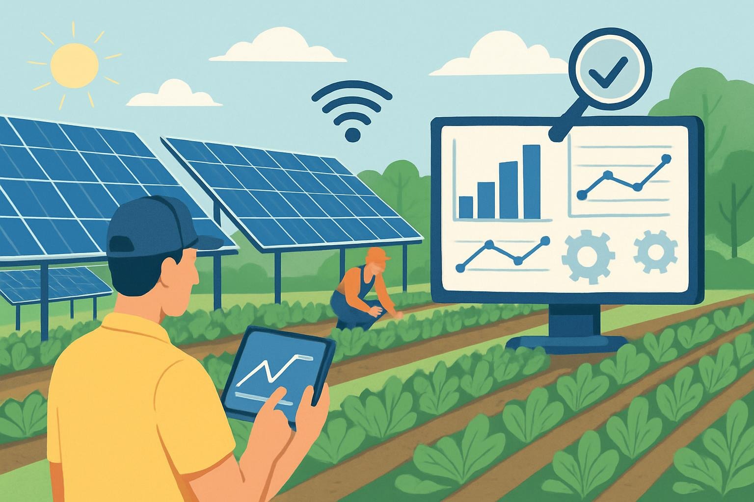 How an agrivoltaic farm utilizES diagnostics and analytics to enhance crop yields and energy output seamlessly.